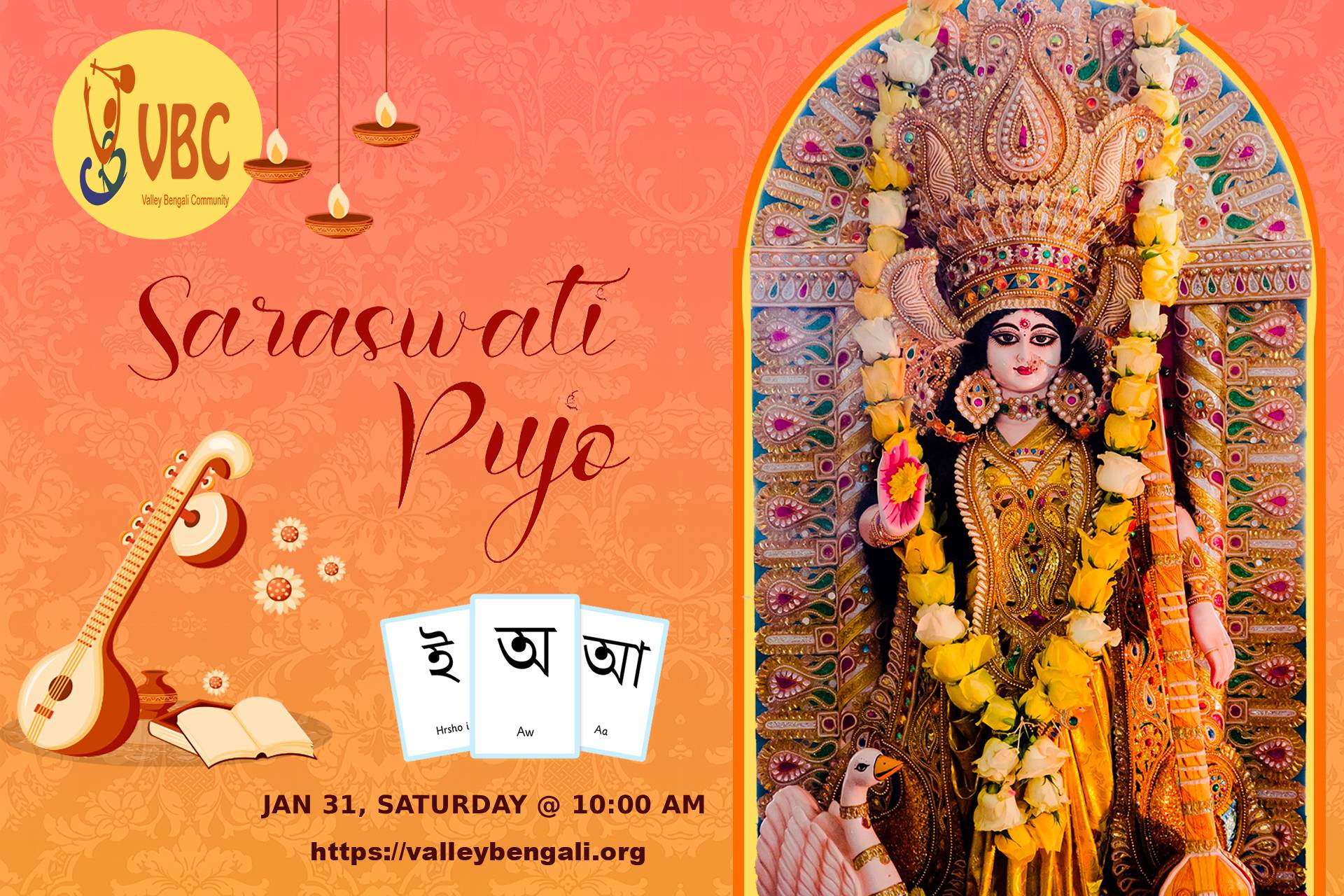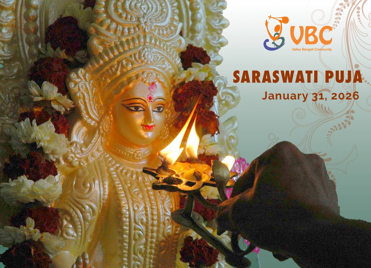 Valley Bengali Community cordially invites you and your family to join us in celebrating Saraswati Puja and marking this auspicious occasion together. Goddess Saraswati, the embodiment of wisdom, learning, and the arts, inspires us to seek knowledge and creativity in our lives. Please join us for a day of prayers, celebration of our cultural heritage, food and festivities. Our local artistes from the Valley and beyond will be presenting colorful performances for your enjoyment. We look forward to seeing you all.